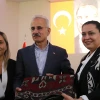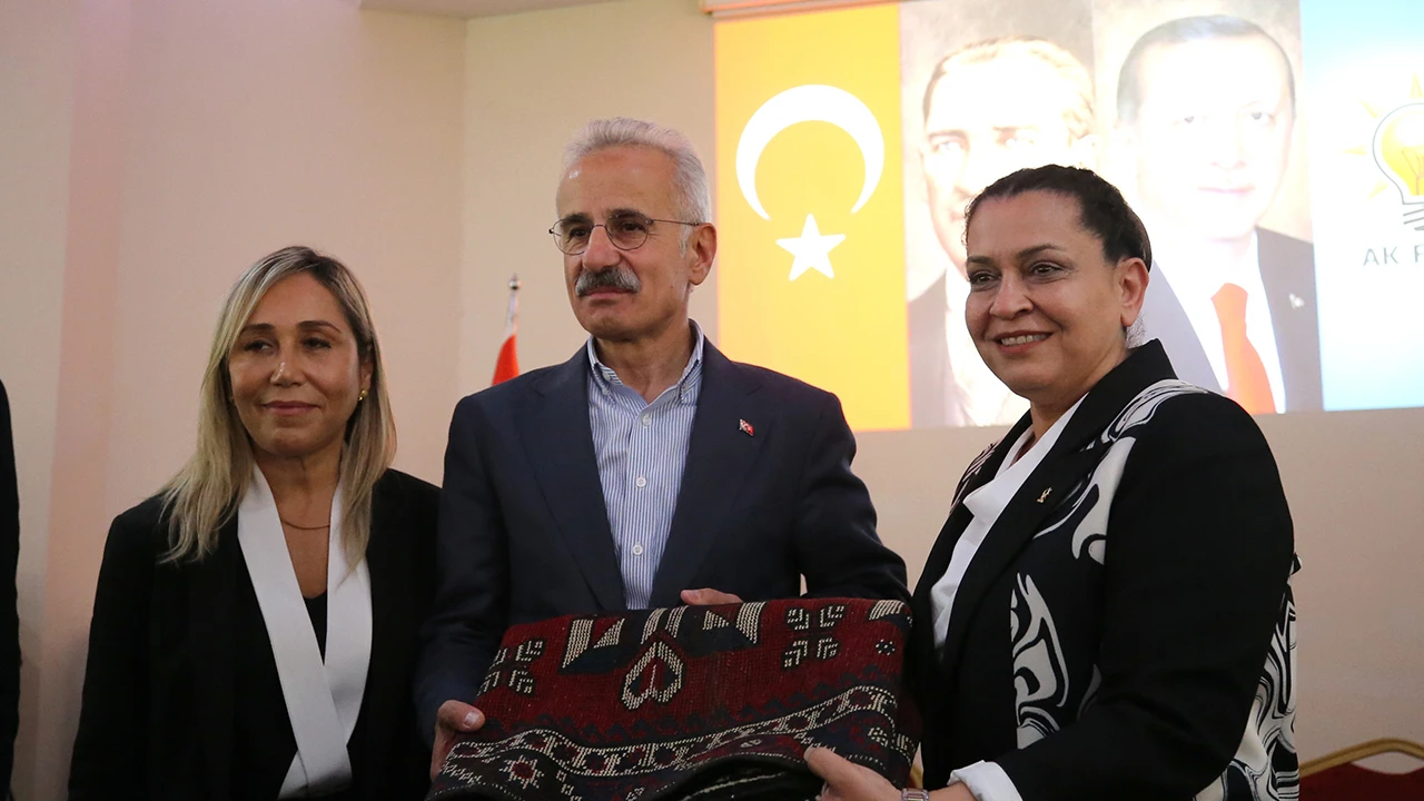 AK Parti Antalya İl Kadın Kolları Başkanı Gülçin Özboz, Uraloğlu'na Antalya'ya özgü kilim hediye etti.