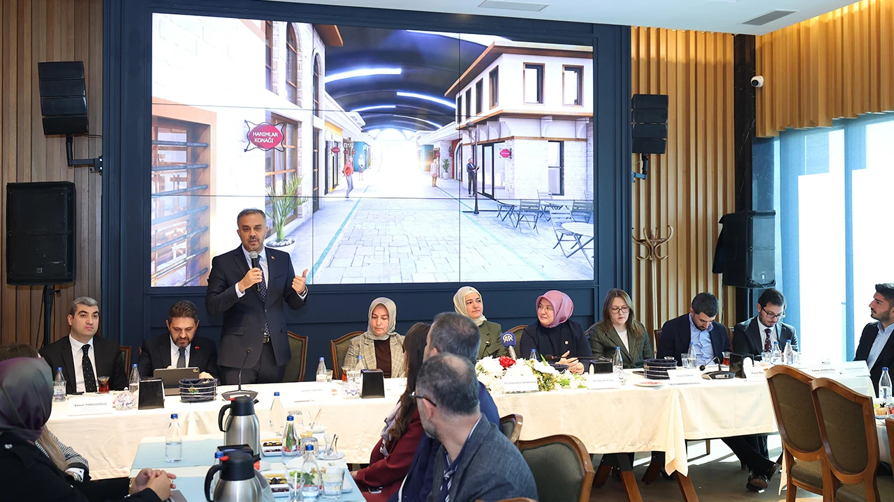 Başkan Toptaş, Fatma Betül Sayan Kaya’ya Onikişubat Belediyesi’nin kadınlara yönelik yürüttüğü projelerin detaylarını içeren bir sunum gerçekleştirdi. Kadın Emeği Çarşısı, Gastronomi Merkezi, Seramik Atölyesi ve İş Geliştirme Merkezleriyle ilgili tanıtım materyallerinin yer aldığı sunum, katılımcılardan büyük ilgi gördü.