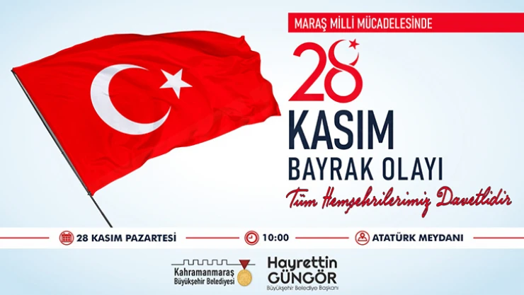 Büyükşehir Belediyesi, Maraş Milli Mücadelesi'nde Bayrak Olayı'nın 103. yıl dönümü dolayısıyla 28 Kasım Pazartesi günü çeşitli etkinlikler düzenleyecek. Programlara tüm vatandaşlar davet edildi.