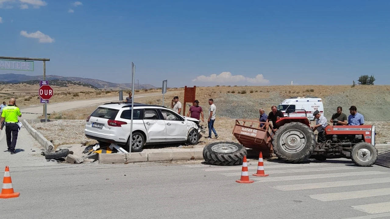 Mahmut A. (34) idaresindeki 33 PA 994 plakalı otomobil, Karaatlı köyü kavşağında Cemil Y. (79) yönetimindeki 15 DU 545 plakalı traktörle çarpıştı.