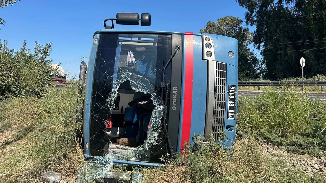 Sürücüsünün ismi öğrenilemeyen 06 BP 8114 plakalı midibüs, Alifakı Mahallesi'nde yol kenarındaki otluk alana devrildi.