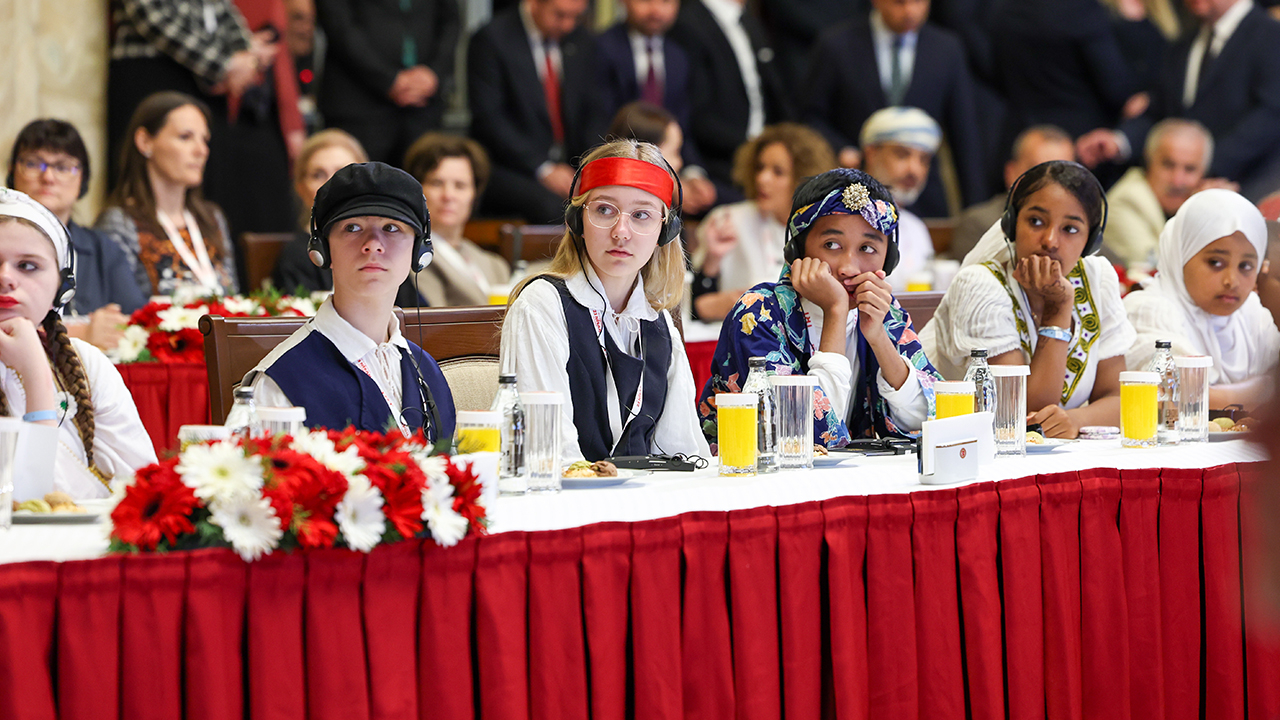 Kurtulmuş, TBMM Tören Salonu'nda, TRT 47. Uluslararası 23 Nisan Çocuk Şenliği kapsamında 30 ülkeden gelen dünya çocuklarını kabul etti.