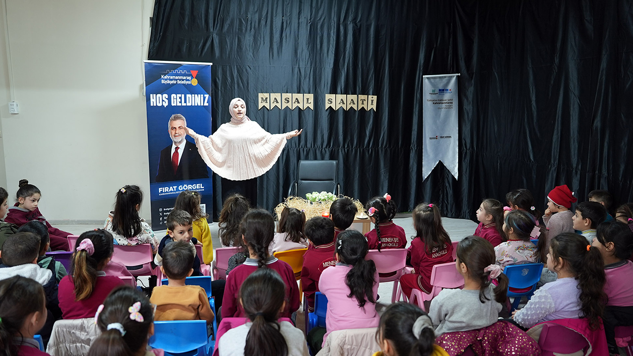 Bu kapsamda Onikişubat Menekşe Anaokulu’nda düzenlenen masal dinletisinde, çocuk edebiyatının sevilen isimlerinden Sevde Gözükara, küçük okurlarla bir araya geldi. Renkli masalları çocuklara aktaran Gözükara, anlatımlarına oyunlar ve hayal kurma egzersizleri ekleyerek çocukların hem eğlenmesini hem de düşünmesini sağladı. Çocuklar masalların içine dahil edilerek kendi fikirlerini ortaya koydu.