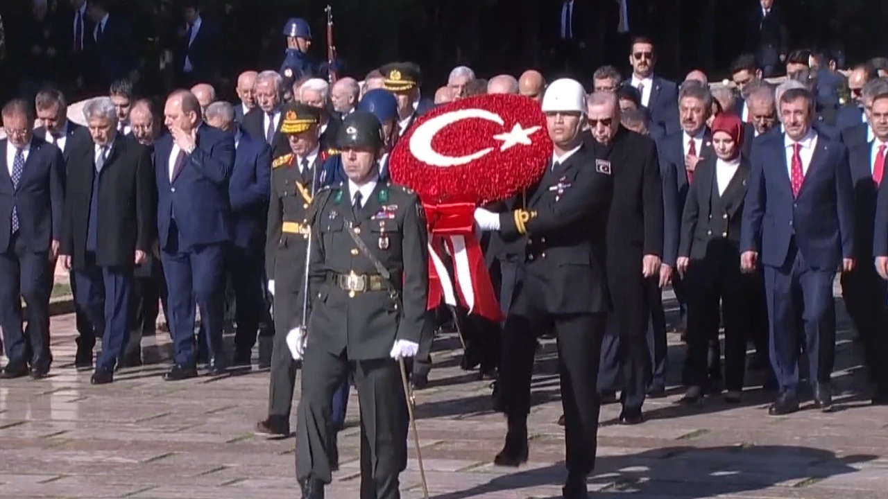 Cumhurbaşkanı Erdoğan'ın, üzerinde ay yıldız bulunan çelengi Atatürk'ün mozolesine bırakmasının ardından saygı duruşunda bulunuldu ve İstiklal Marşı okundu. Daha sonra Erdoğan ve beraberindekiler, Misak-ı Milli Kulesi'ne geçti.