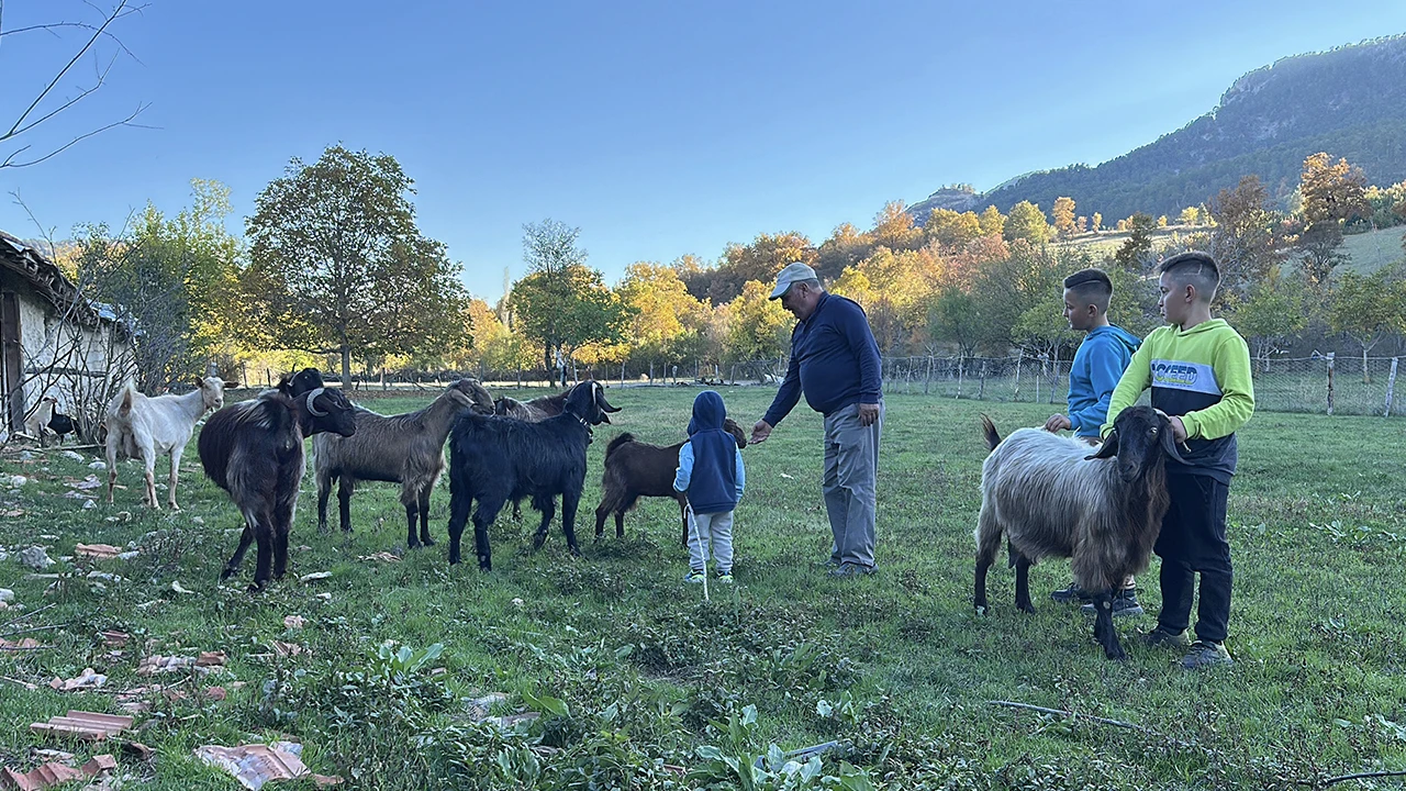 Dede, çoban mesleğini ikiz torunlarına da öğretmeye çalışıyor