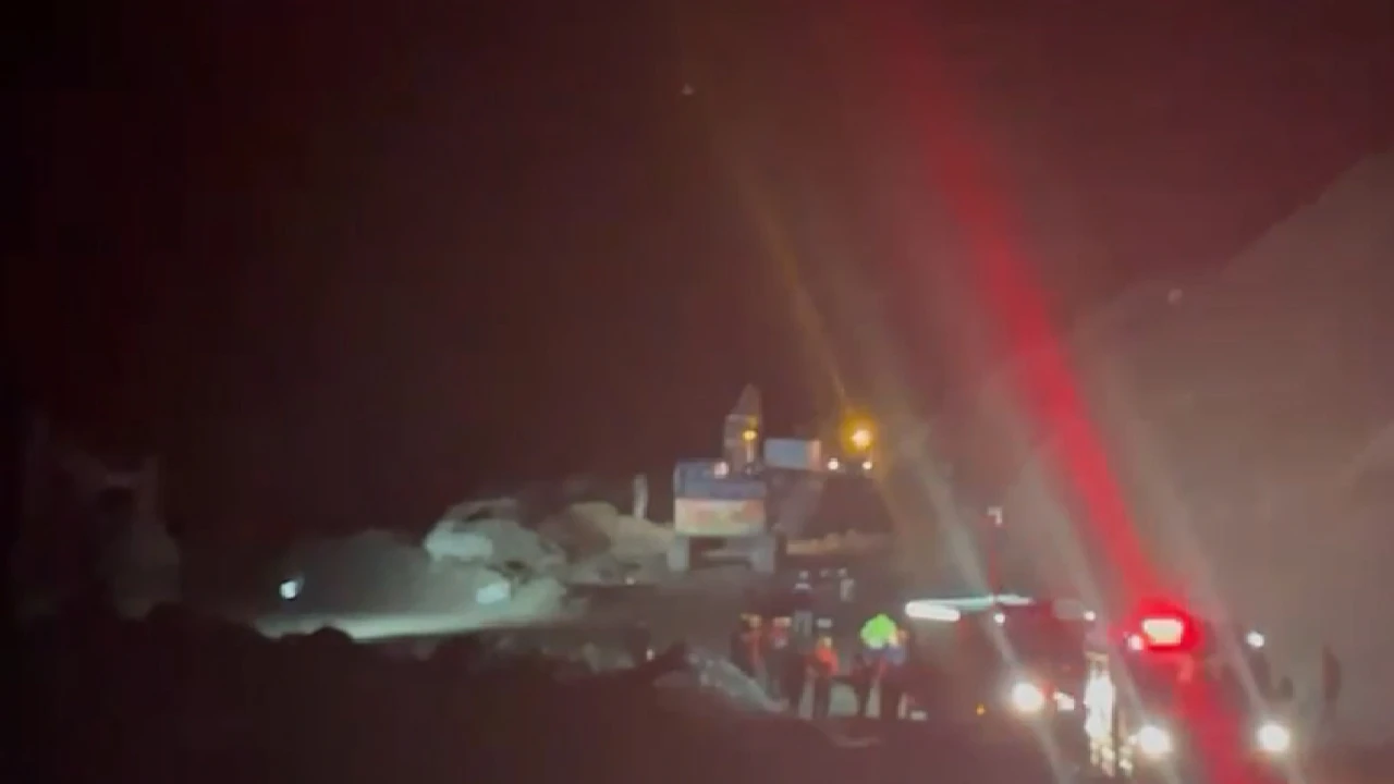 Toprak kayması devam eden bölgede, ekiplerin arama ve kurtarma çalışması devam ediyor.