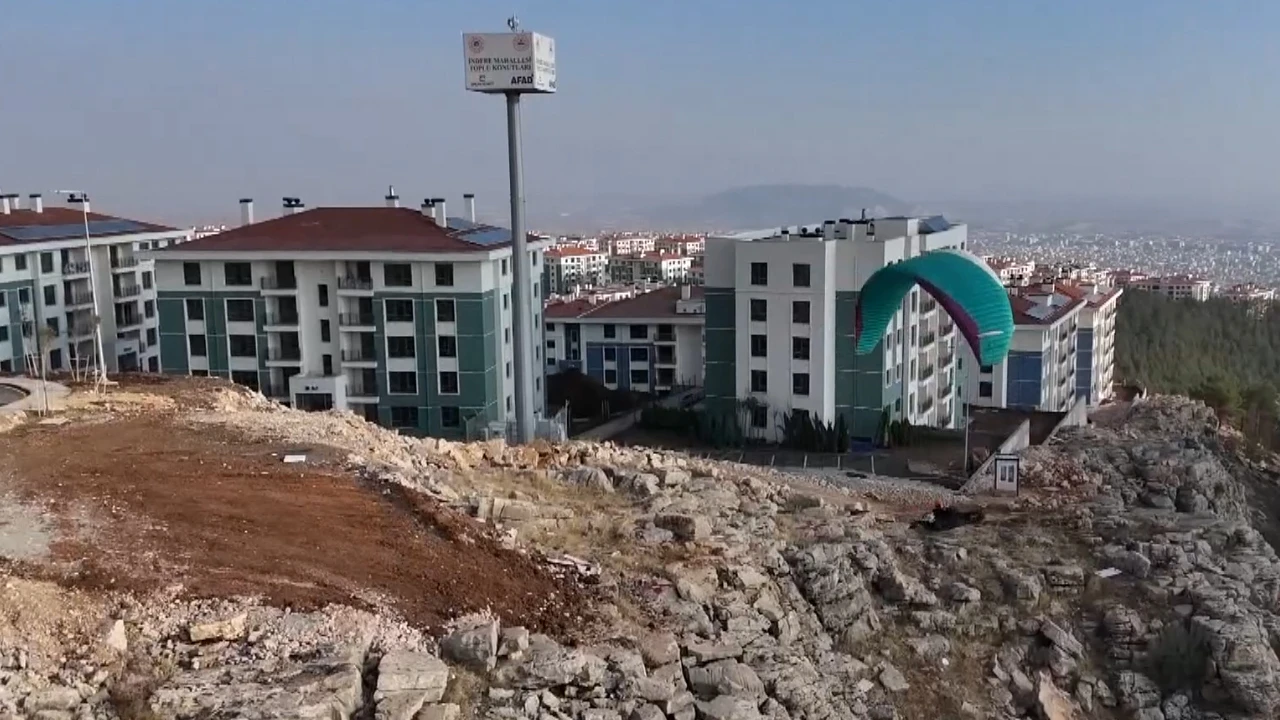 Kahramanmaraş merkezli 6 Şubat 2023 depremlerinin ardından kalıcı konutların hızla yükseldiği Adıyaman'ın İndere bölgesi, yamaç paraşütü sporcularının yeni uçuş rotalarından biri haline geldi.