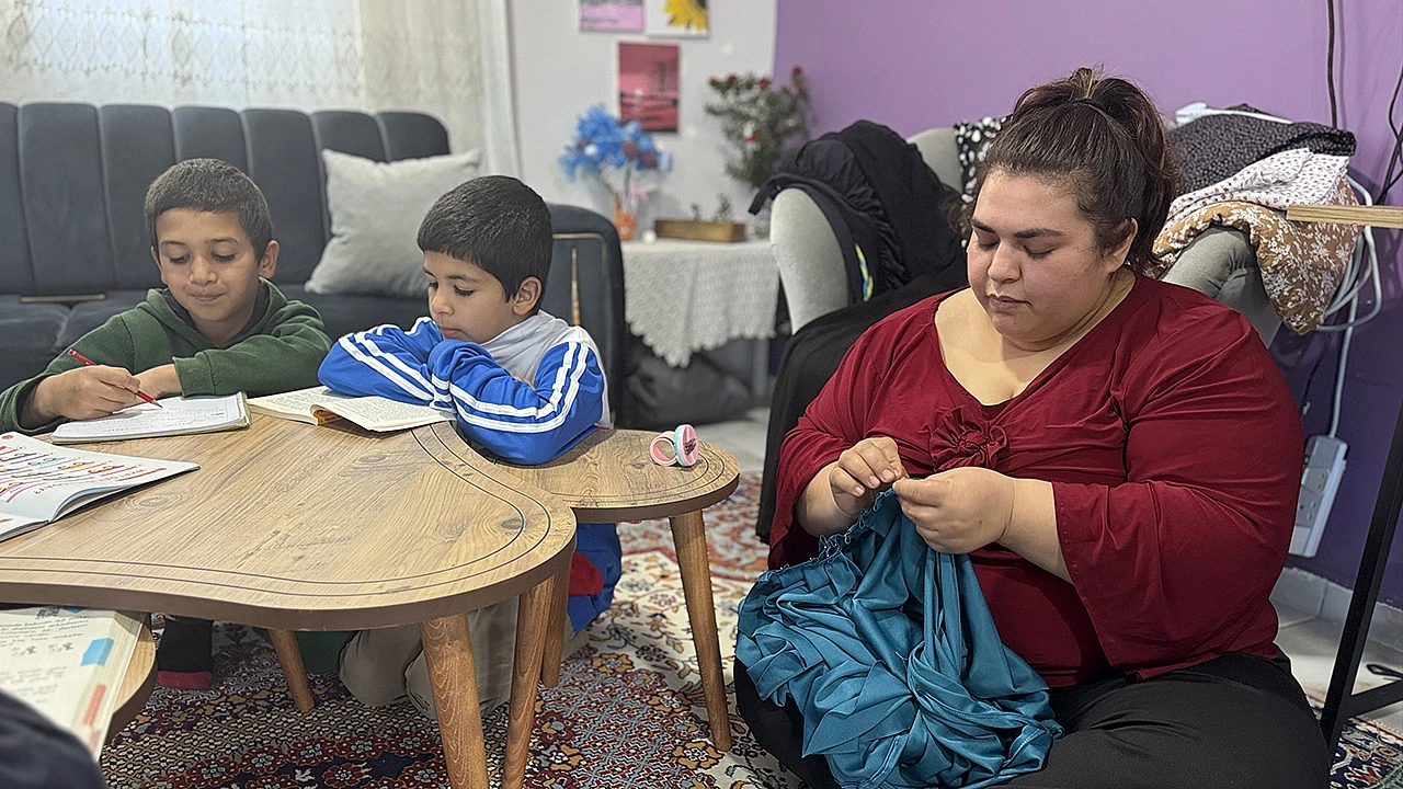 Hatay'da 6 Şubat 2023'teki depremlerde yıkılan evlerinin yerine hayırseverlerce yaptırılan yeni yuvasına yerleşen 28 yaşındaki Nuriye Geller, terzilik yaparak engelli babası, oğlu ve annelik yaptığı 3 kardeşinin geçimini sağlıyor.