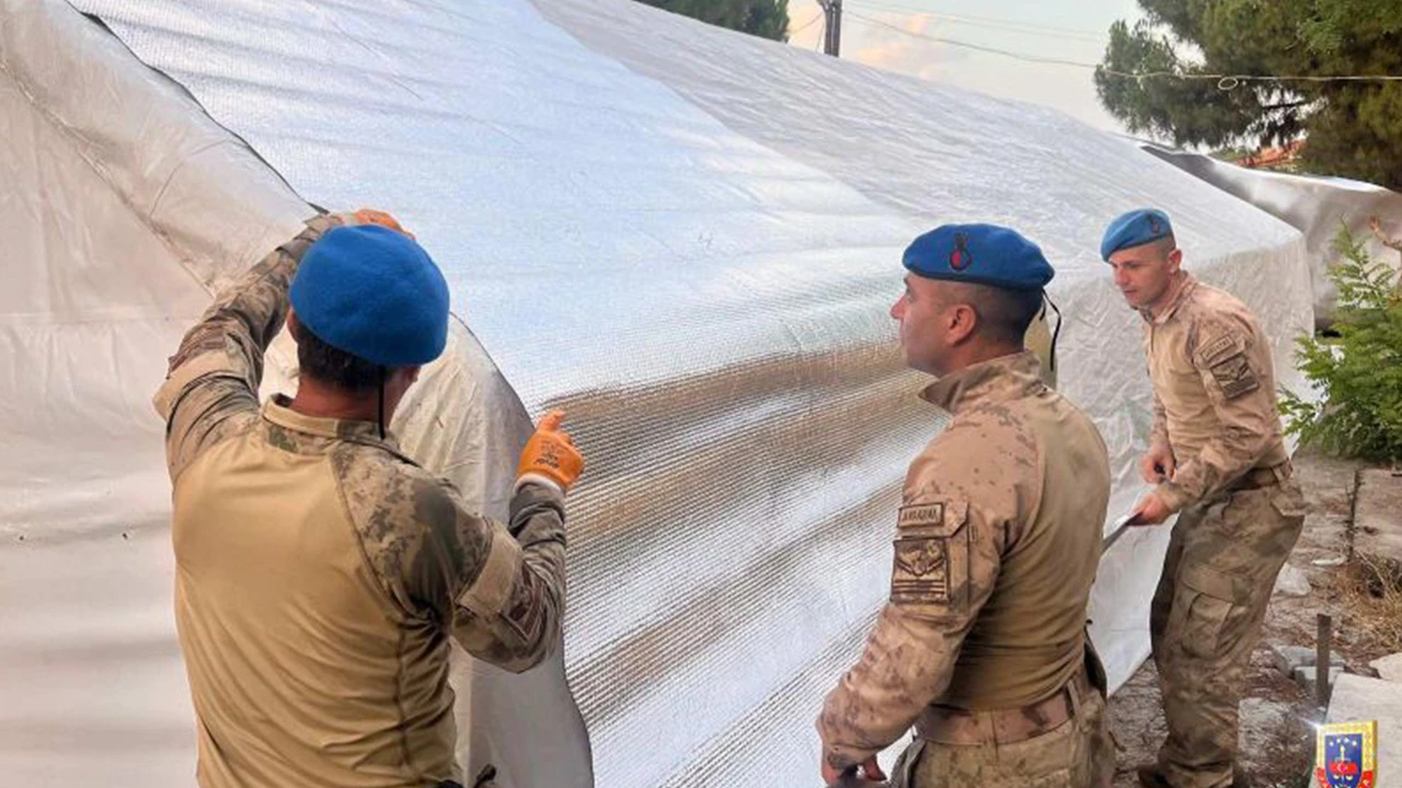 Jandarma Ekipleri, evi zarar gören depremzedelerin barınma ihtiyaçlarını karşılamak amacıyla çadır kurma faaliyetlerini titizlikle yürütüyor. Aynı zamanda yardım destekleriyle afetzedelerin yanında olmaya devam ediyor.