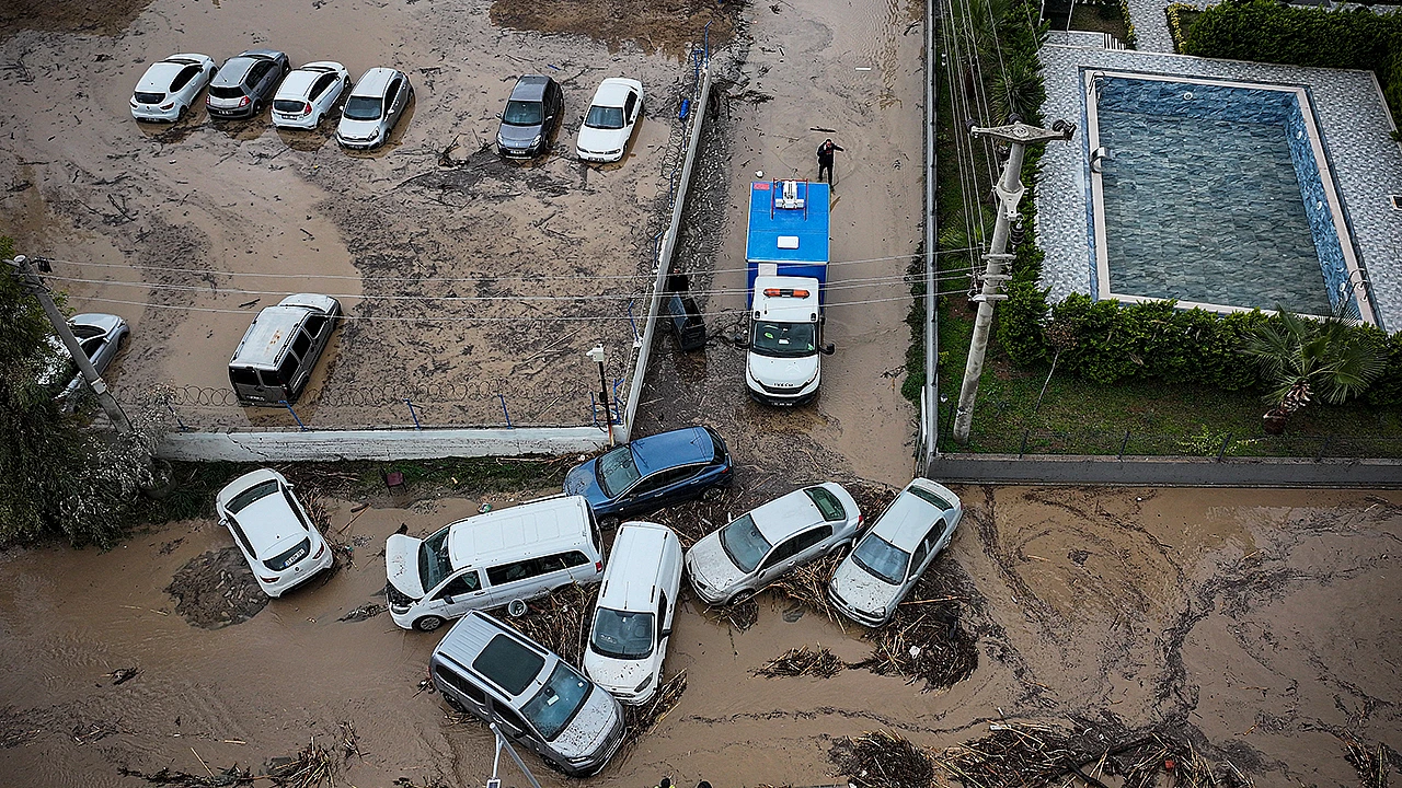Mersin'de kuvvetli yağış nedeniyle bazı dereler taştı, bazı araçlar su altında kaldı.