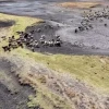 Kuşlar için önemli beslenme, konaklama ve üreme alanı olan, aynı zamanda tatlı su balıkçılığı ve tarımsal sulamada kullanılan baraj gölünde su seviyesindeki çekilme, yer yer kalan su birikintileri, göl tabanındaki çamurda besin arayan göçmen kuşlar ve bölgedeki hayvan sürüleri havadan görüntülendi.
