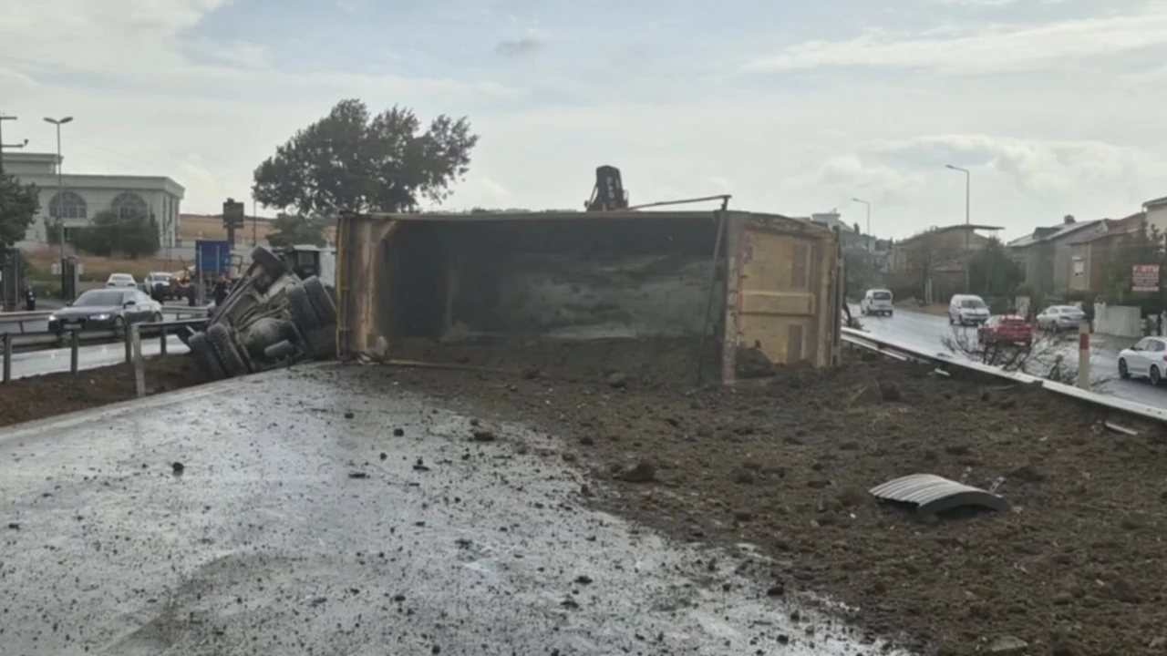 Büyükçekmece'de hafriyat kamyonunun devrilmesi nedeniyle D-100 kara yolu Ankara istikametinde ulaşım sağlanamıyor.