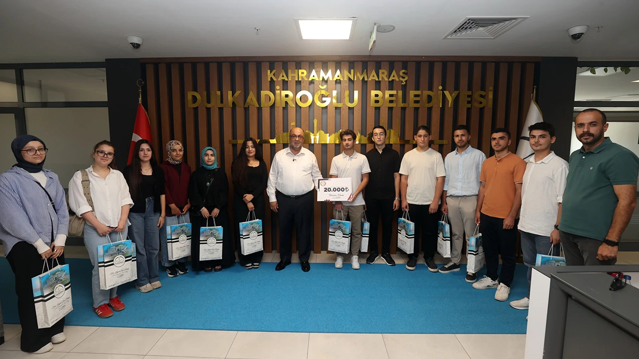Türkiye genelinde ilk 50 bin içerisine giren öğrenciler, Dulkadiroğlu Belediye Başkanı Mehmet Akpınar tarafından makamında ağırlanarak ödüllendirildi. Başarı gösteren öğrencilere 20 bin TL tutarında nakdi eğitim desteği sağlandı.