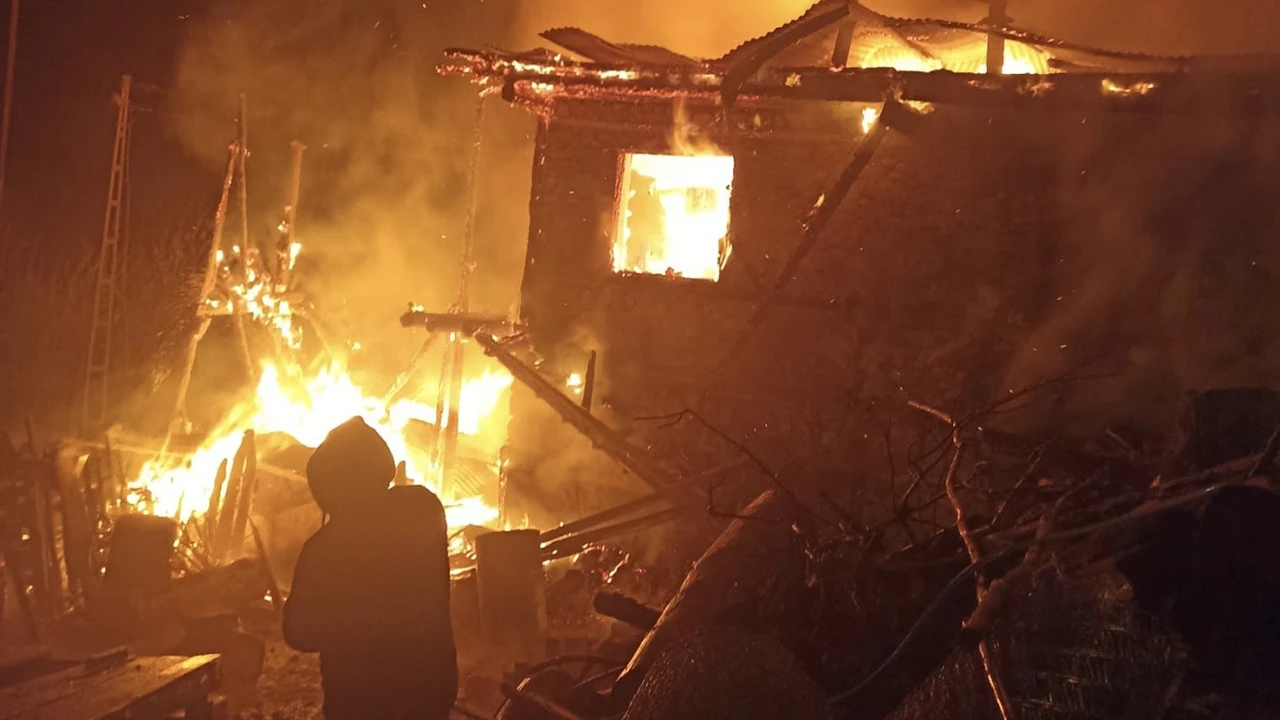 Ekipler, evin yan tarafındaki okul lojmanına da sıçrayan yangını söndürdü.