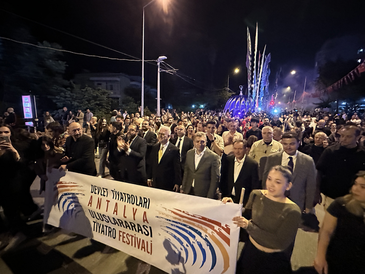 Renkli görüntülerin oluştuğu ve vatandaşların ilgiyle izlediği kortej yürüyüşüne, Vali Hulusi Şahin, Devlet Tiyatroları Genel Müdürü Tamer Karadağlı, Antalya Devlet Tiyatrosu Müdürü Gökhan Tüzün de katıldı.