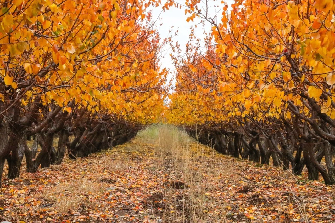 Hatay'ın Hassa ilçesi Amanos Dağları eteklerindeki meyve bahçeleri, sonbahar renkleriyle kartpostallık manzaralar sunuyor. Erik, şeftali, nar, üzüm ve incir gibi sayısız meyvelerden oluşan bahçelerde sarı ve kahverenginin her tonunu görmek mümkün.