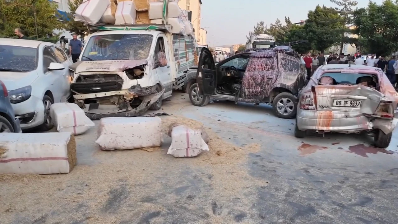 Bitlis'in Güroymak ilçesinde freni boşalan maden yüklü tır, ışıklarda bekleyen ve park halindeki 11 araca çarptıktan sonra durdu.
