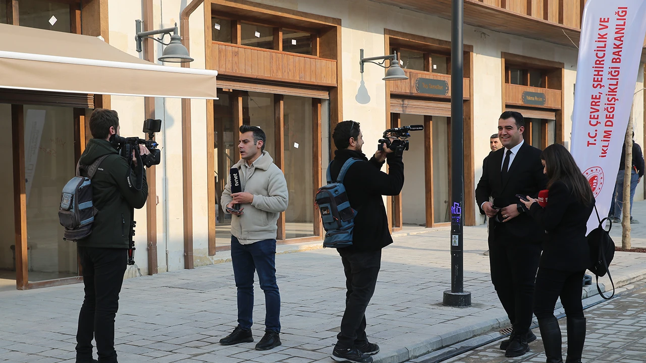 Çevre, Şehircilik ve İklim Değişikliği Bakanlığı koordinasyonundaki etkinliğe katılan basın mensupları, restorasyon çalışmalarının sürdüğü tarihi Uzun Çarşı'yı gezdi.