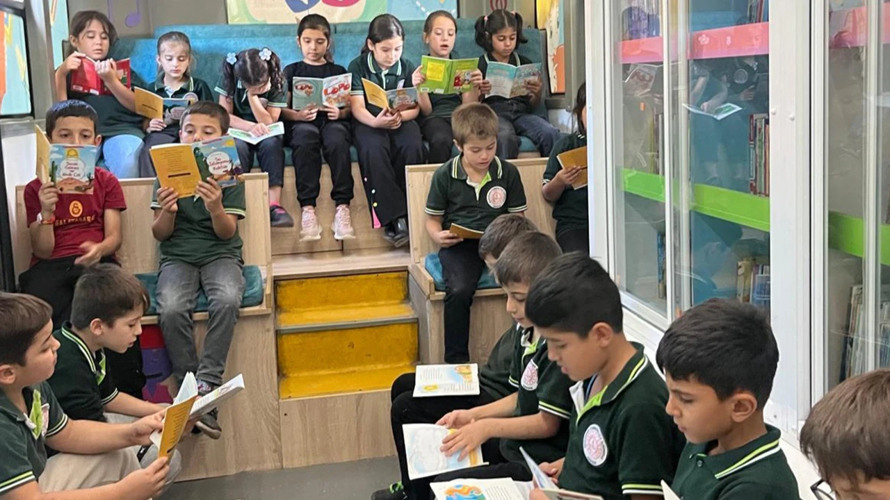 Geleceğe umut taşıyan mobil kütüphane çocuklarla buluştu