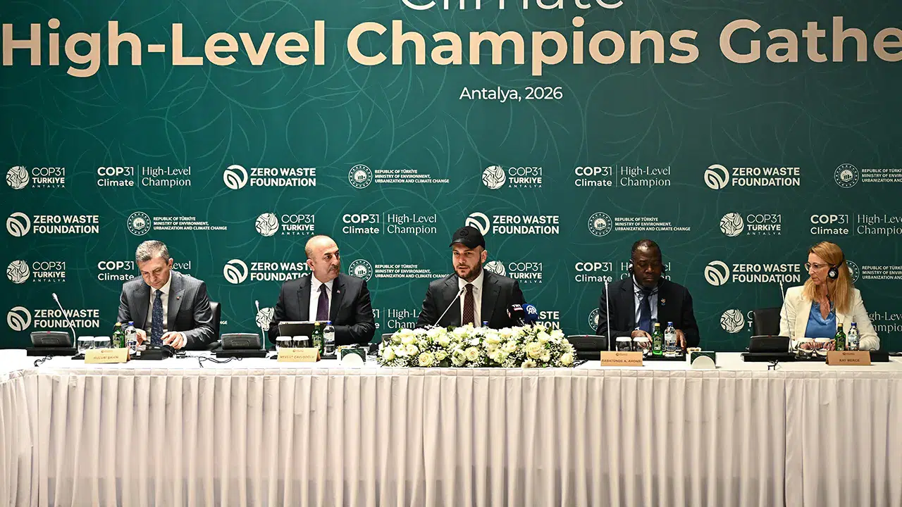 Çavuşoğlu, Antalya'nın Serik ilçesinde bir otelde düzenlenen "COP31 Yüksek Düzeyli İklim Şampiyonları Toplantısı"nda, insanlığın ortak geleceğini şekillendirecek en kritik başlıklardan biri olan iklim eylemi için bir araya geldiklerini söyledi.