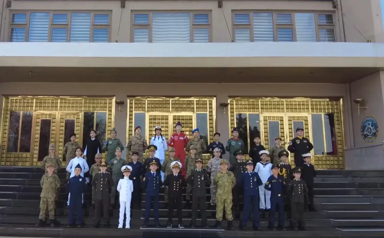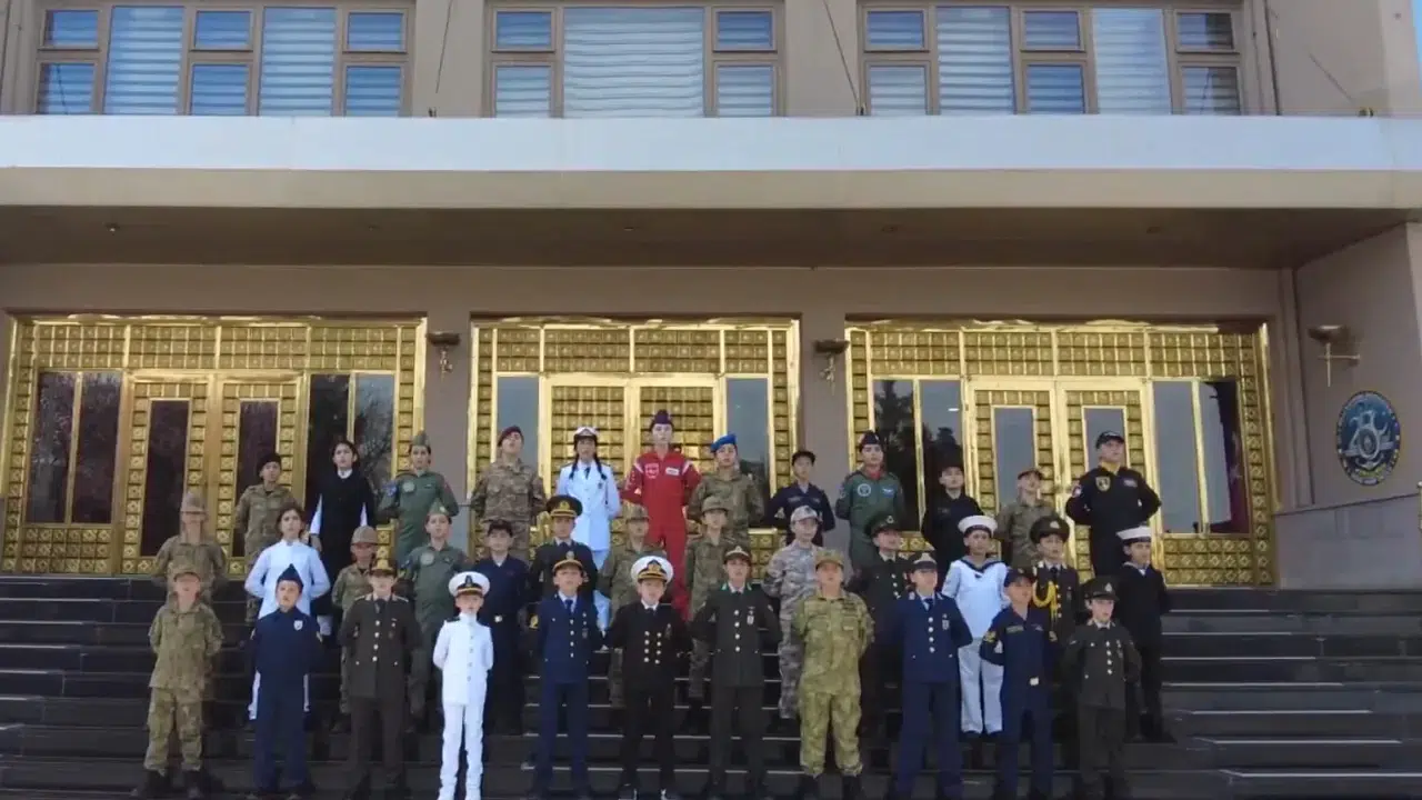 Paylaşımda, Kara, Deniz ve Hava Kuvvetleri Komutanlıklarının üniformalarıyla “Vatan Marşı”nı seslendiren çocukların görüntüleri yer alıyor.