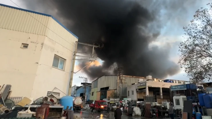 Yalınayak Mahallesi Hurdacılar Sitesi'nde kağıt ve plastik malzemelerin bulunduğu geri dönüşüm fabrikasının deposundan duman yükseldiğini görenler, durumu 112 Acil Çağrı Merkezi'ne bildirdi.