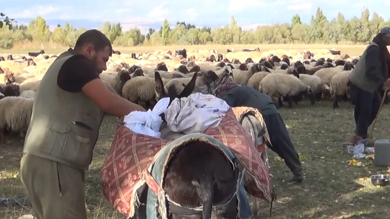 Erzurum'un Karayazı yaylasından gelen besici Halis Esmer, mayısta geldikleri yaylada 5 ay konakladıktan sonra kışı geçirmek için Mardin'in Nusaybin ilçesi kırsalına döneceklerini söyledi.