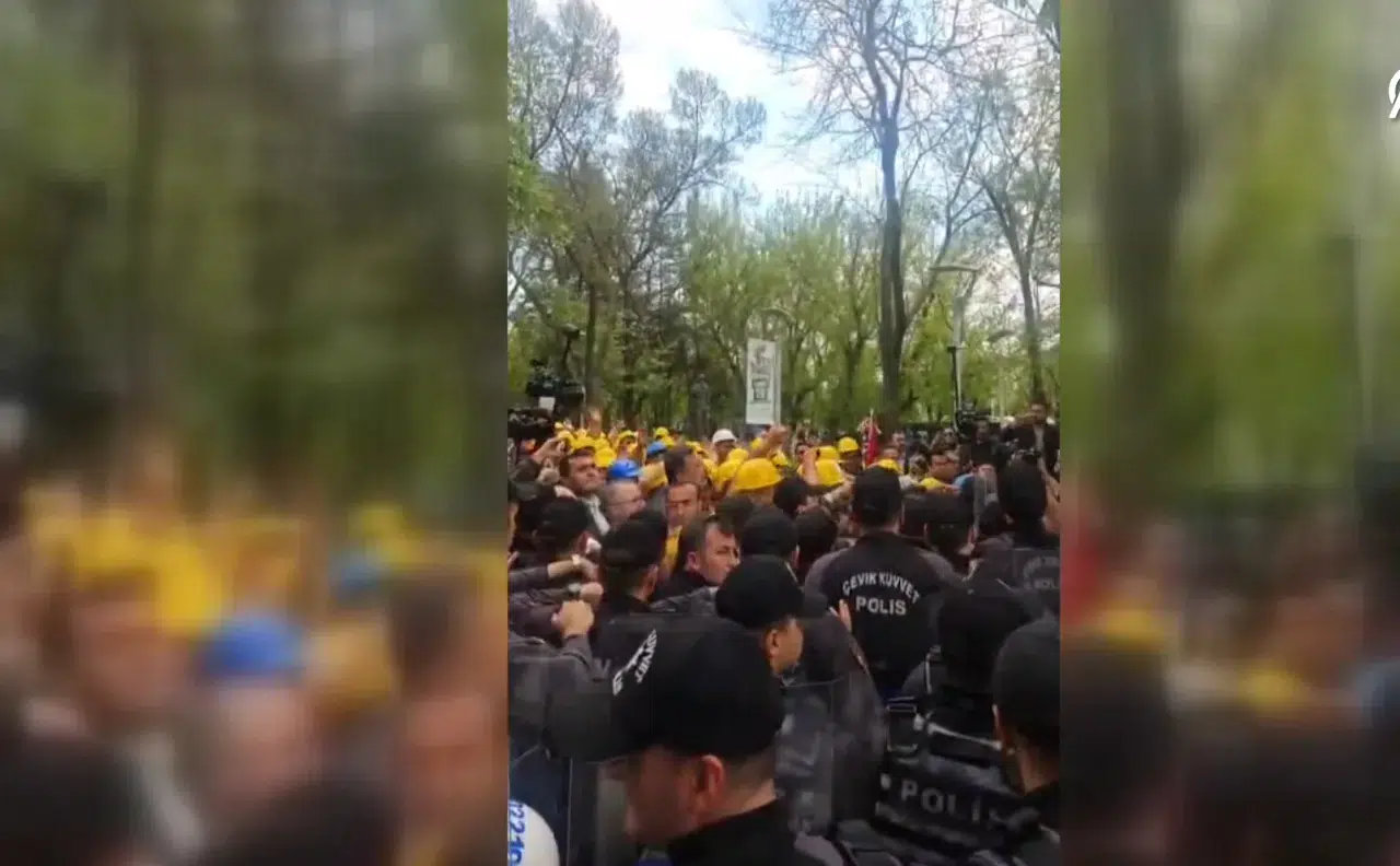 Kurtuluş Parkı'nda eylem yapan maden işçilerinin Enerji ve Tabii Kaynaklar Bakanlığına yapmak istedikleri yürüyüşe polis tarafından izin verilmedi.