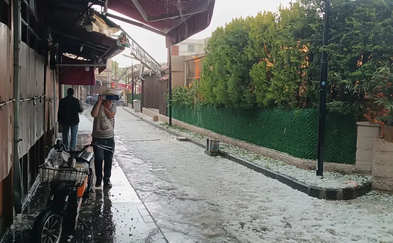 Hava sıcaklığının 17 derece ölçüldüğü kentte dolu, yerini yağmura bıraktı.