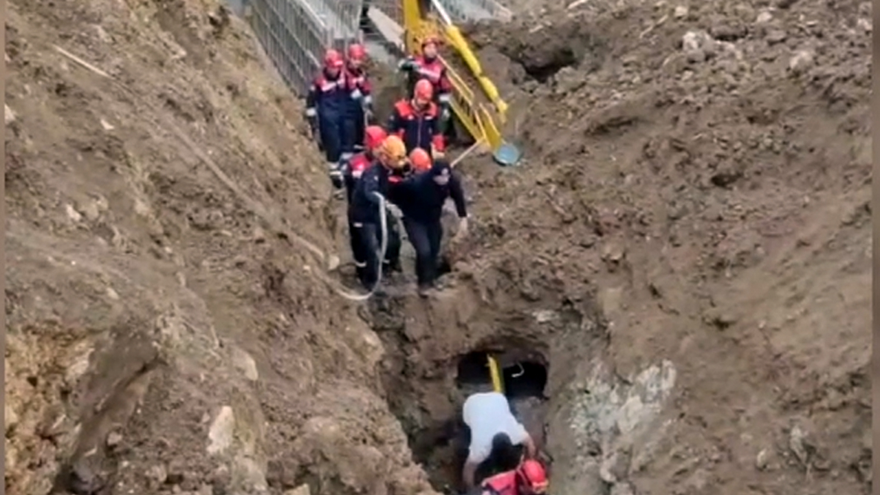 Göçük altındaki iş makinesinde mahsur kalan operatör Mustafa K, ekiplerin müdahalesi sonucu bulunduğu yerden kurtarıldı.