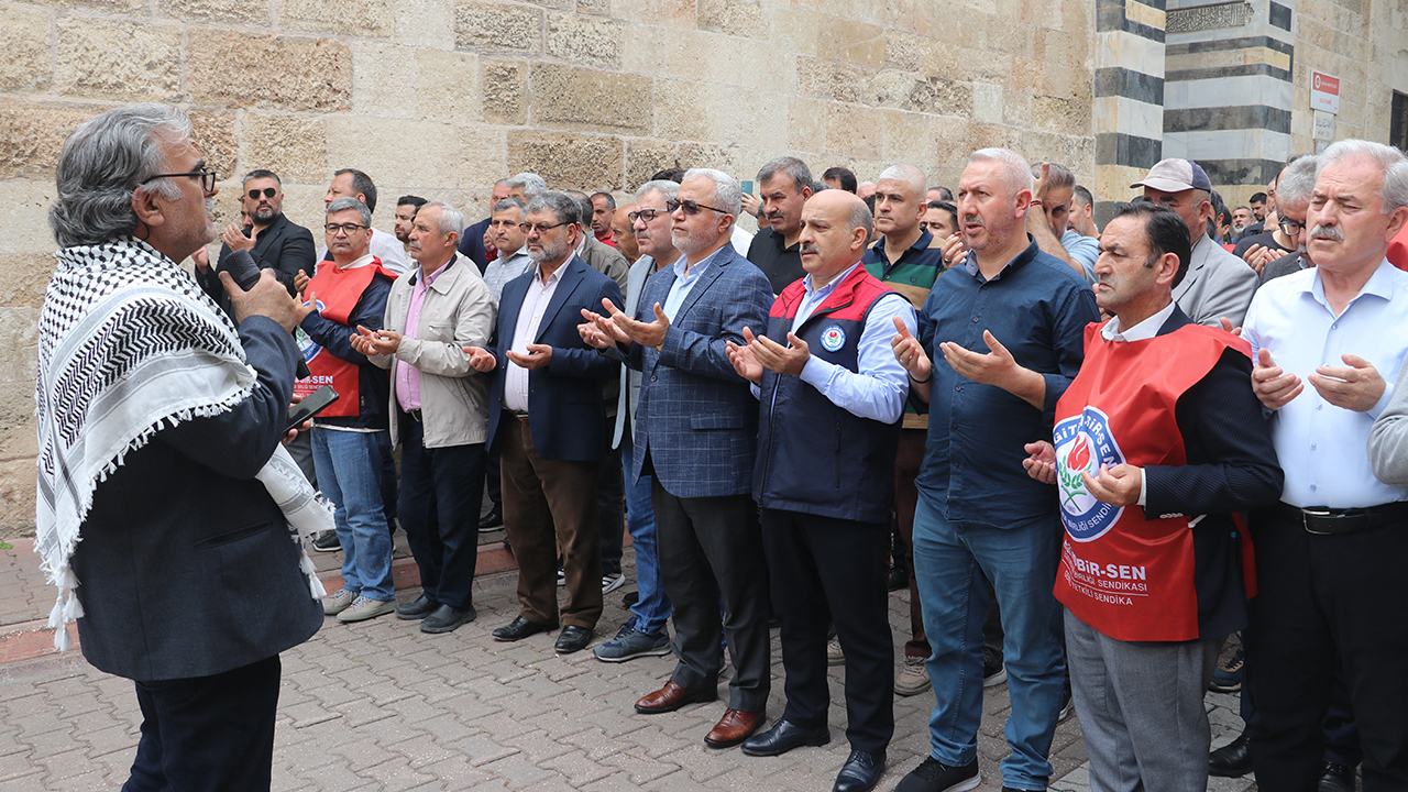 Memur-Sen ve Eğitim-Bir-Sen üyeleri, Kent Meydanı'nda bir araya gelerek Kahramanmaraş'taki okul saldırısında yaşamını yitirenler için gıyabi cenaze namazı kıldı, dua etti.