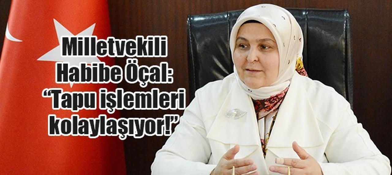 AK Parti Kahramanmaraş Milletvekili Habibe Öçal, teklifinde kendi imzasının da bulunduğu “Tapu Kanunu ve Bazı Kanunlarda Değişiklik Yapılmasına Dair Kanun”un TBMM Genel Kurulunda kabul edildiğini söyledi. Tapu işlemlerinde bürokrasiyi azaltan düzenlemenin ayrıntılarına ilişkin bilgiler paylaşan Milletvekili Habibe Öçal; “Devlet kademelerinde işlerin daha hızlı ilerlemesi vatandaş memnuniyeti açısından son derece önemli. Bu bağlamda birçok yasal düzenlemeyi yaptık. Şüphesiz toplumun daha rahat nefes alması için, yapılan iş ve işlemlerde bürokratik oligarşinin ortadan kaldırılması elzemdir” dedi.