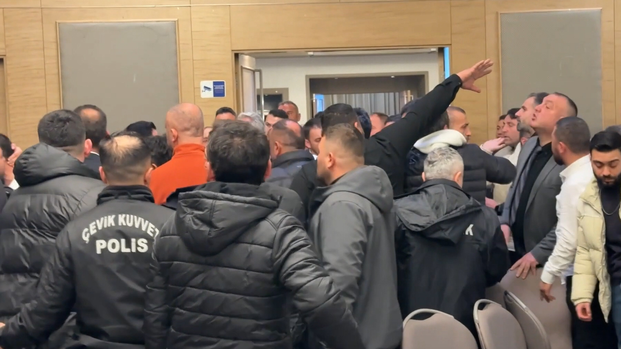 Kentteki bir otelde gerçekleştirilen genel kurulda, oy verme işlemi sırasında taraflar arasında delege kartları üzerinden tartışma çıktı.