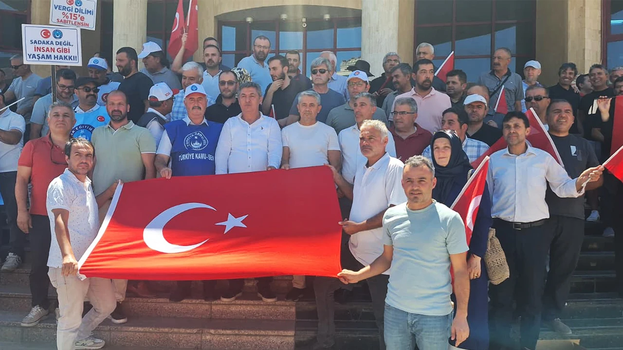 Kahramanmaraş NFK Kültür Merkezi önünde üyeleriyle birlikte açıklama yapan Kahramanmaraş Kamu-Sen İl Temsilcisi Hasan Yurdagül, maaş zamlarına ilişkin açıklamada bulundu.