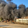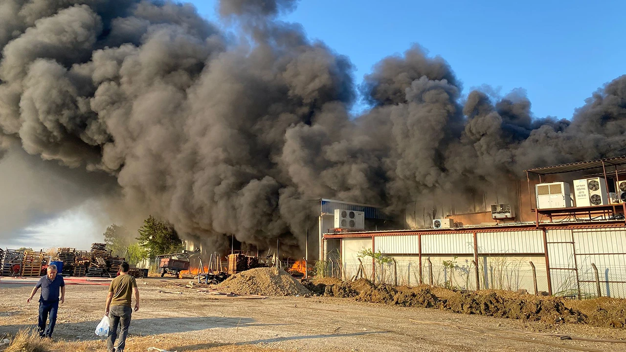 İki depoda çıkan yangın söndürülmeye çalışılıyor
