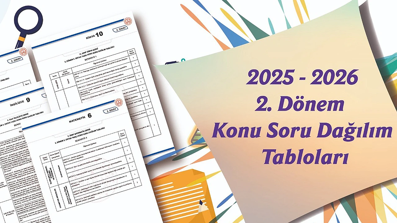 Yayımlanan örnek tablolar, sınavlarda ölçülecek konu/kazanım/öğrenme çıktılarının soru sayılarının ve dağılımlarının dengeli biçimde planlanmasına katkı sunarak il-ilçe ve okul düzeyinde yapılacak ortak sınavlarda hazırlanacak dokümanlara referans niteliği taşıyor.