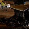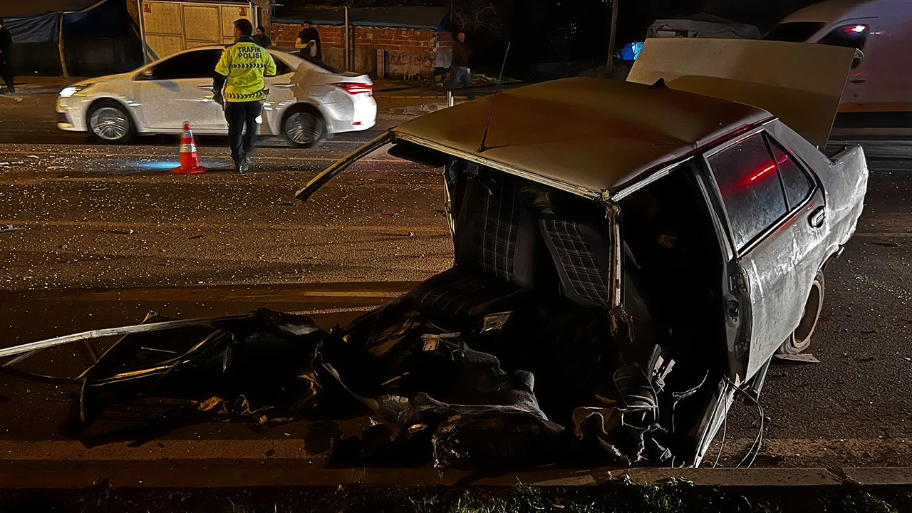 Öte yandan kazada parçalanarak ikiyi ayrılan otomobilin motor bölümünün 200 metre ileriye savrulduğu görüldü.