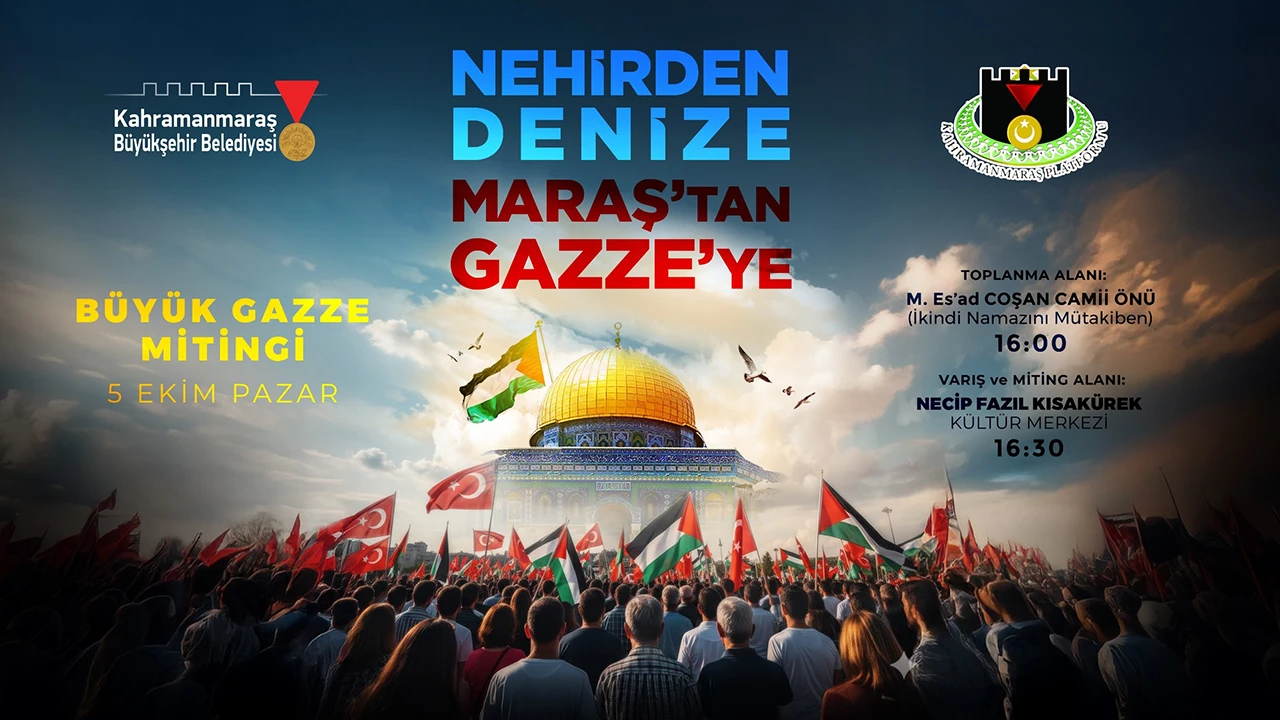Kahramanmaraş, Gazze'de devam eden insanlık dramına dikkat çekmek ve dayanışma mesajı vermek için tarihi bir buluşmaya hazırlanıyor. Kahramanmaraş Büyükşehir Belediyesi ve Kahramanmaraş Platformu'nun öncülüğünde organize edilen 'Büyük Gazze Mitingi', 5 Ekim Pazar günü binlerce vatandaşın katılımıyla gerçekleştirilecek.