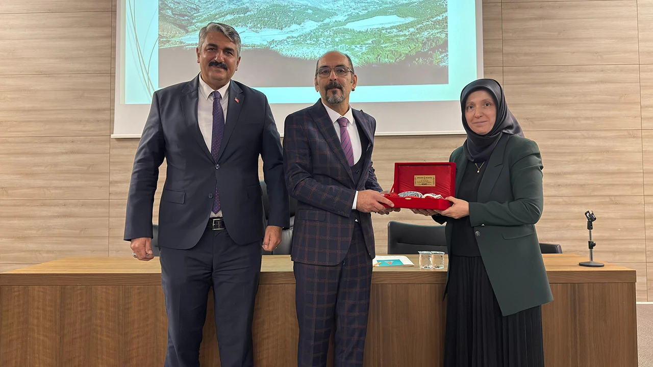 Soru-cevap olarak devam eden konferansın sonunda Onikişubat Meclis Başkanvekili Ayşe Cesur tarafından günün anısına Prof. Dr. Cevdet Merih Erek’e hediye takdiminde bulunuldu.