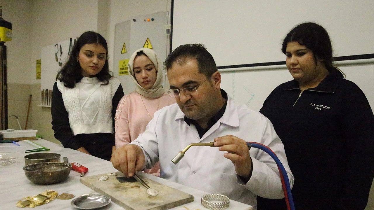 Kurşun, "Öğrencilerimiz, projenin her aşamasında görev alıyor. Tasarımların çiziminden dijital ortama aktarılmasına, dökümden parlatmaya ve kaynak işlemlerine kadar tüm süreçlere dahil oluyorlar. Böylece reel üretim sahasında takının nasıl ortaya çıktığını görerek ciddi bir deneyim kazanıyorlar." dedi.