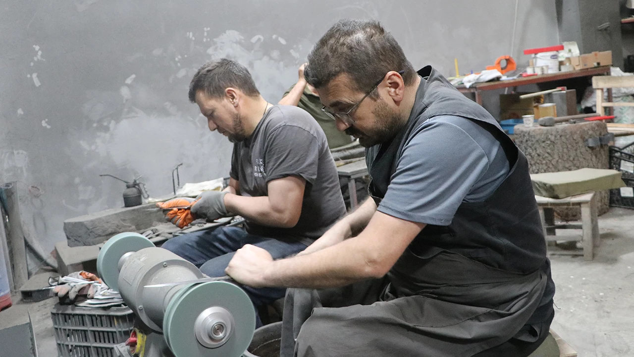 Kahramanmaraş'ta coğrafi işaret tescilli Hartlap bıçağı üreticileri, Kurban Bayramı öncesi yoğun talebi karşılamak için çalışmalarını sürdürüyor.
