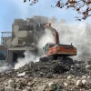 Yıkılan binanın enkazı ise belirlenen döküm alanlarına taşınıyor.