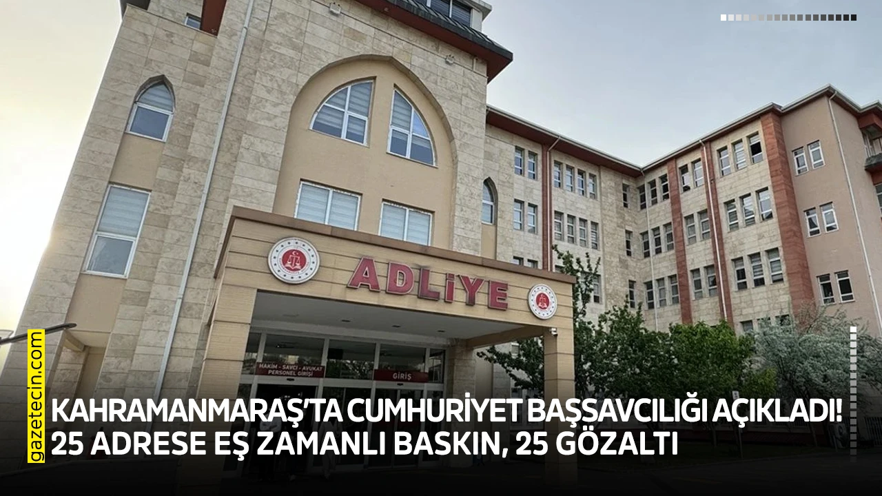 - Kahramanmaraş'ta Cumhuriyet Başsavcılığı açıkladı! 25 adrese eş zamanlı baskın, 25 gözaltı