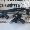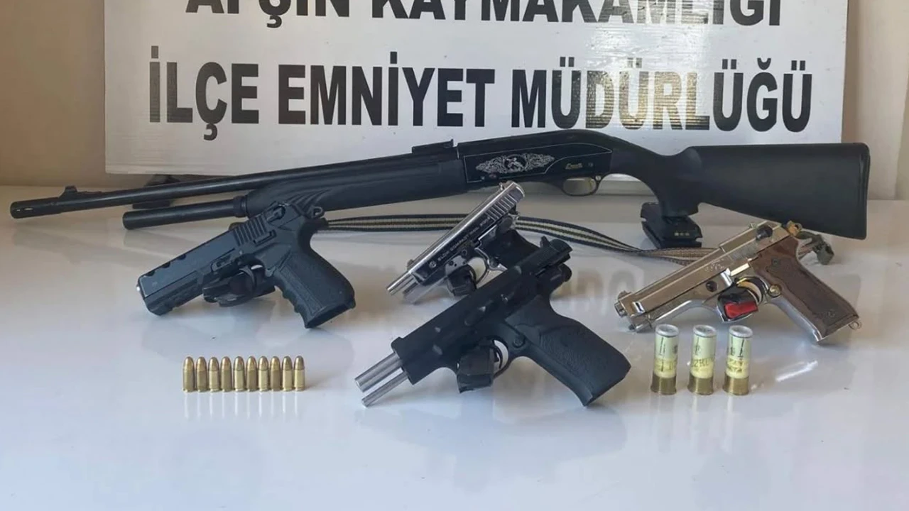 Adreslerde yapılan aramalarda 3 kurusıkı tabanca, 3 şarjör, 1 ruhsatsız tabanca, 1 av tüfeği ve 3 kartuş ele geçirildi.