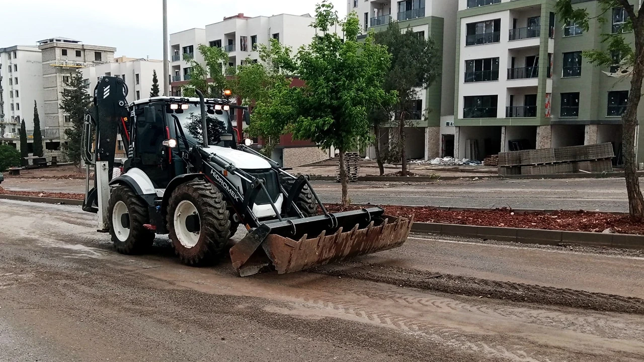 Kahramanmaraş Büyükşehir Belediyesi, etkili olan sağanak yağışla inşaat alanlarından arterlere taşınarak trafik akışını ve yaya güvenliğini olumsuz etkileyen moloz, taş, çamur ve diğer atıkları temizledi.