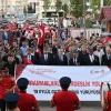 Alparslan Türkeş Bulvarı’ndan başlayan ve Kahramanmaraş Büyükşehir Belediyesi Mehteran Takımı’nın coşkulu marşlarıyla eşlik ettiği yürüyüş, NFK Kültür Merkezi’nde son buldu.
