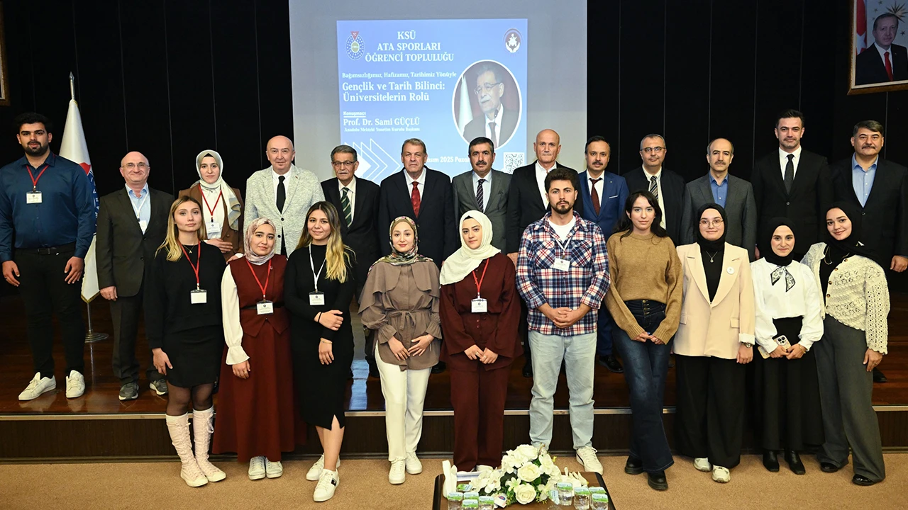 Kahramanmaraş Sütçü İmam Üniversitesi (KSÜ) Ata Sporları Öğrenci Topluluğu tarafından düzenlenen Bağımsızlığımız, Hafızamız, Tarihimiz Yönüyle Gençlik ve Tarih Bilinci, Üniversitelerin Rolü başlıklı konferans, 58. ve 59. Dönem Tarım ve Köy İşleri Bakanı, Anadolu Mektebi Kurucusu Prof. Dr. Sami Güçlü'nün katılımıyla gerçekleştirildi.