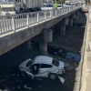 Çarpışmanın etkisiyle otomobil, bariyerleri aşarak köprüden düştü.