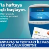 Vatandaşlar, Aralık ayının her Pazartesi günü TROY logolu temassız kartlarıyla yapacakları ilk yolculukta bu avantajdan yararlanabilecek.