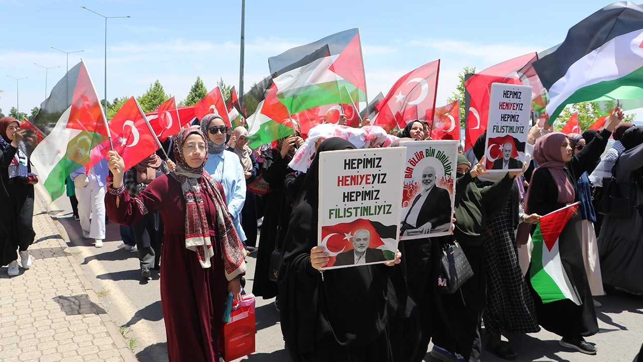 Kahramanmaraş Sütçü İmam Üniversitesi öğrenci topluluklarının öncülüğünde, rektörlük kavşağı önünde toplanan öğrenciler ve akademisyenler, ellerinde Türk ve Filistin bayraklarıyla sloganlar atarak Yunus Emre Kongre ve Kültür Merkezi önüne kadar yürüdü.
